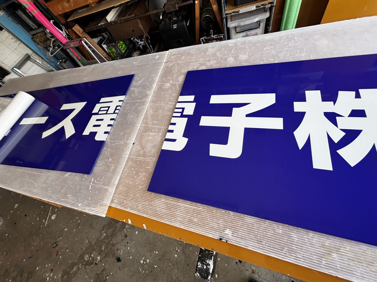 電子部品屋さんの看板 インクジェットプリント パネル看板 施工事例 壁面看板 壁面看板を取り付けました。アルミ複合板を2枚繋ぎ、 歪まないように裏面はアルミ複合板で補強してます。 担当者は中高の⚽部の後輩君でした。ありがとうございます(^▽^)/ 製作動画はインスタで公開してます! 2025.10.14